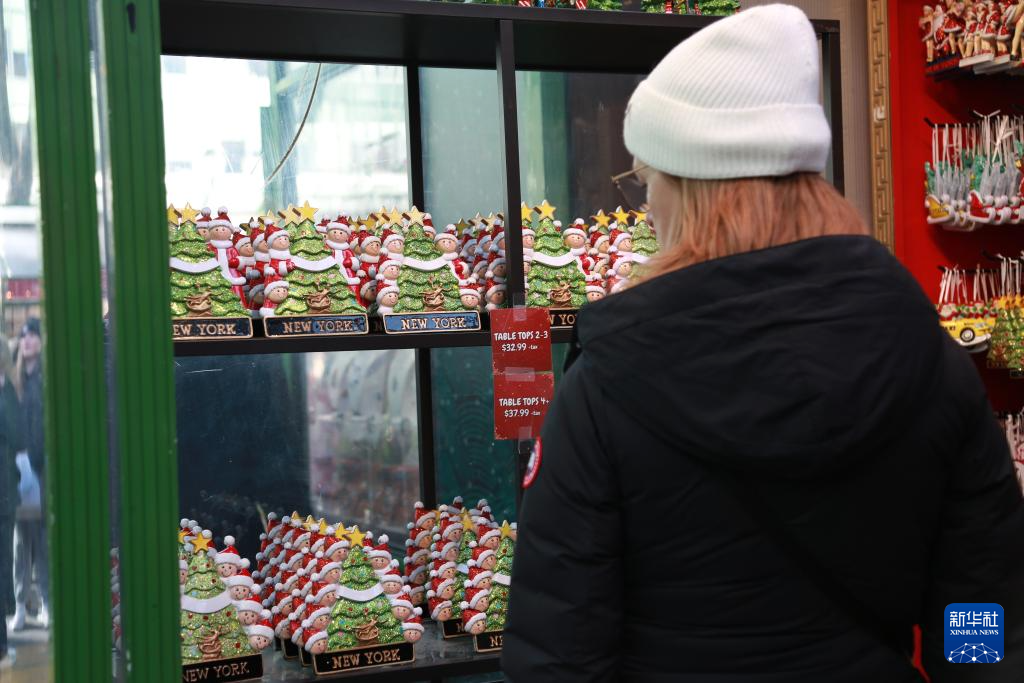 在纽约曼哈顿中城布莱恩特公园的节日季露天市场,记者看到,多款圣诞装饰品和纪念品价格明显偏高。体积不大的圣诞雪人摆件售价超过30美元,自由女神像摆件接近50美元,一对小型装饰品也高达40多美元。面对高昂价格,消费者在摊位前反复权衡,购买决策明显更加谨慎。