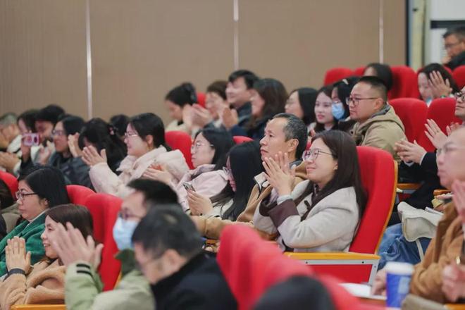 其核心观点可概括为三个落脚点:坚守三尺讲台、专注一间教室、扎根一所学校。窦校长强调,教育家精神既需要宏大的理想引领,也需要扎实的课堂与学校实践作为支撑;学科教学、班级育人与学校文化三者相融,才能形成持续的集体人格与育人机制。报告中还结合主题教学、教师集体人格塑造,以及AI技术在教学组织与专业发展中的应用,指出技术应服务于课程与教学逻辑的重构,而非替代教育的价值追求。窦校长的阐释兼具理论深度与案例温度,现场多次引起热烈掌声。