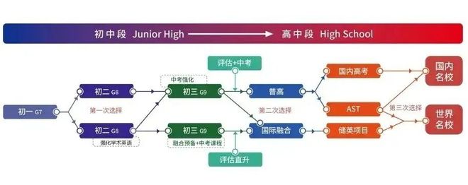✅ 初升高时,学生可自主选择普高或国际高中路径,无缝衔接国内外升学通道。