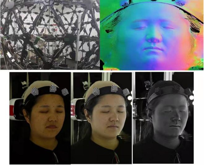 数字人制作长期面临数据采集精度低、效率慢的行业痛点。实验室团队成功研发出高精度多光源光场采集阵列“穹宇”,通过多视角同步采集与可控光源系统,实现对真人演员皮肤质感、微表情细节的高精度捕捉,并生成可用于基于物理渲染(PBR)流程的法线贴图、高光贴图等核心数据。